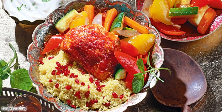 Mhren Lauch Paprika Peperoni und Knoblauch zu den Hhnchenschenkeln geben mit Orangensaft und Gemsebrhe ablschen und mit arabischem Orangengewrz wrzen. Finde was du suchst - kstlich schnell. Den Bratschlauch vorsichtig ffnen Hhnchen Gemse und Sud zusammen mit dem Couscous anrichten die Berberitzen.